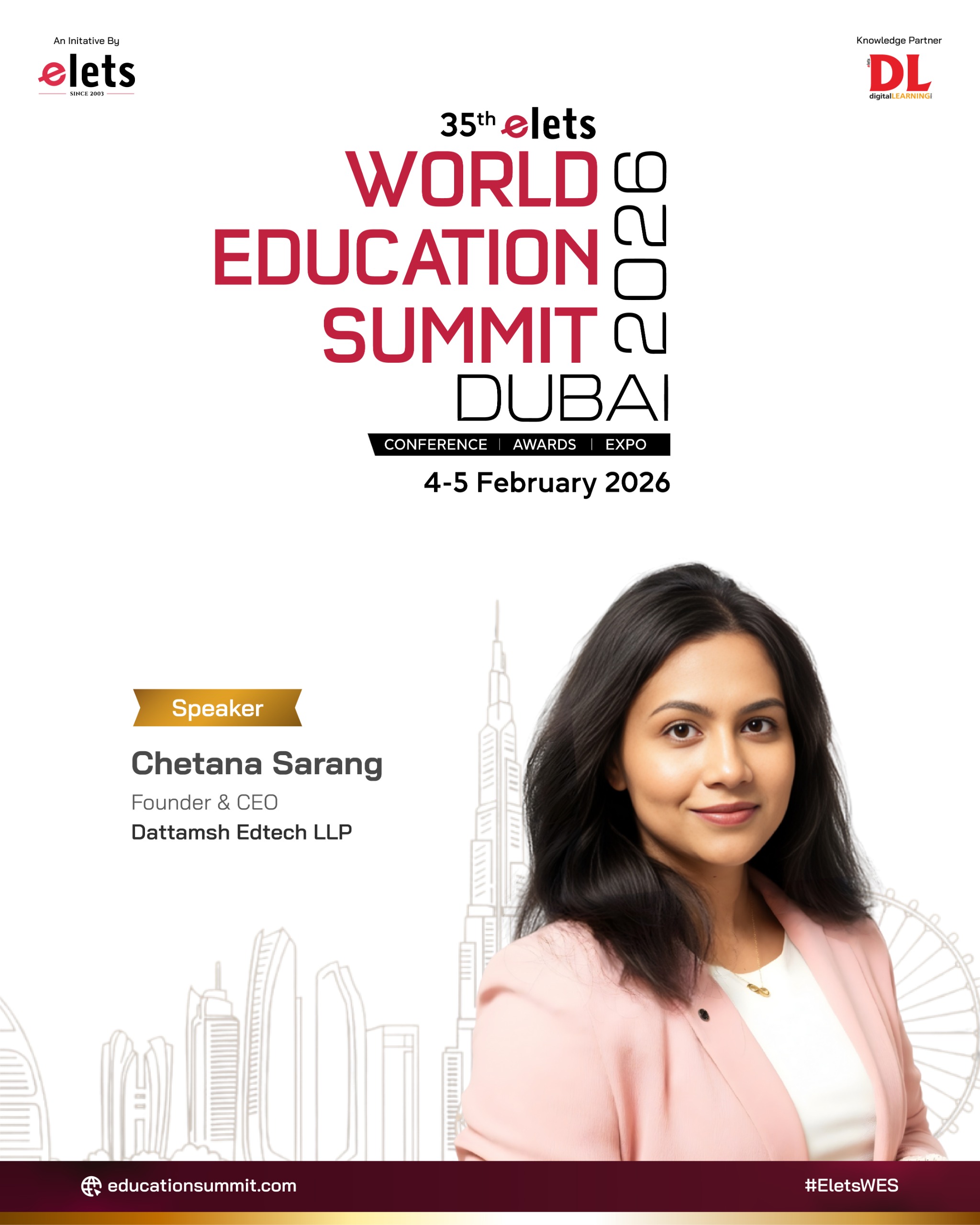 We are proud to share highlights from the prestigious 35th World Education Summit 2026, held in Dubai and hosted by Elets Technomedia in association with digitalLEARNING Magazine. This global summit brought together visionary educators, policymakers, EdTech leaders, and innovators from across the world to discuss the future of education, digital transformation, and global learning strategies. We were honored to be part of this global platform where our representative Chetana Sarang, Founder & CEO of Dattamsh Edtech LLP, participated as a distinguished speaker, sharing insights on innovation in education, digital learning transformation, and the evolving role of technology in shaping future-ready learning ecosystems.